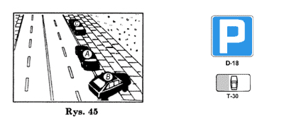 Dopuszcza się zatrzymanie i postój pojazdu samochodowego na chodniku kołami jednego boku (na rys. 45 pojazd A) lub przedniej osi (na rys. 45 pojazd B ), pod warunkiem, że: