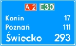 drogowskaz tablicowy umieszczany obok jezdni na autostradzie |