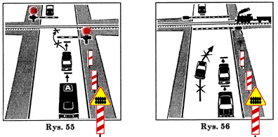 objeżdżania opuszczonych zapór lub pół zapor (rys. 55)