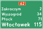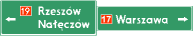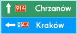 drogowskaz w kształcie strzały do miejscowości wskazujący numer drogi |